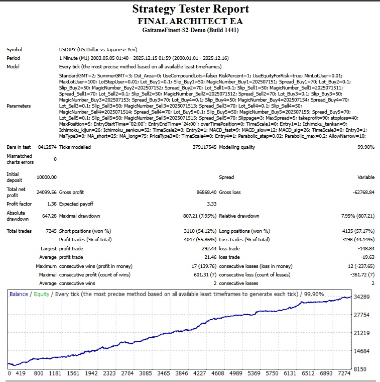 FINAL ARCHITECT EAは、USDJPY(米ドル/円)を対象としたデイトレード型のFX自動売買EA(エキスパートアドバイザー)です。長期フォワードに裏打ちされたマルチロジック搭載、ドル円EAの決定版