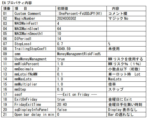 | 備考 | <経歴改定> 2024.03.15 OnePercent-Fx USDJPY(H1) 登録申請 2024.03.18 コメント訂正(文字数) |