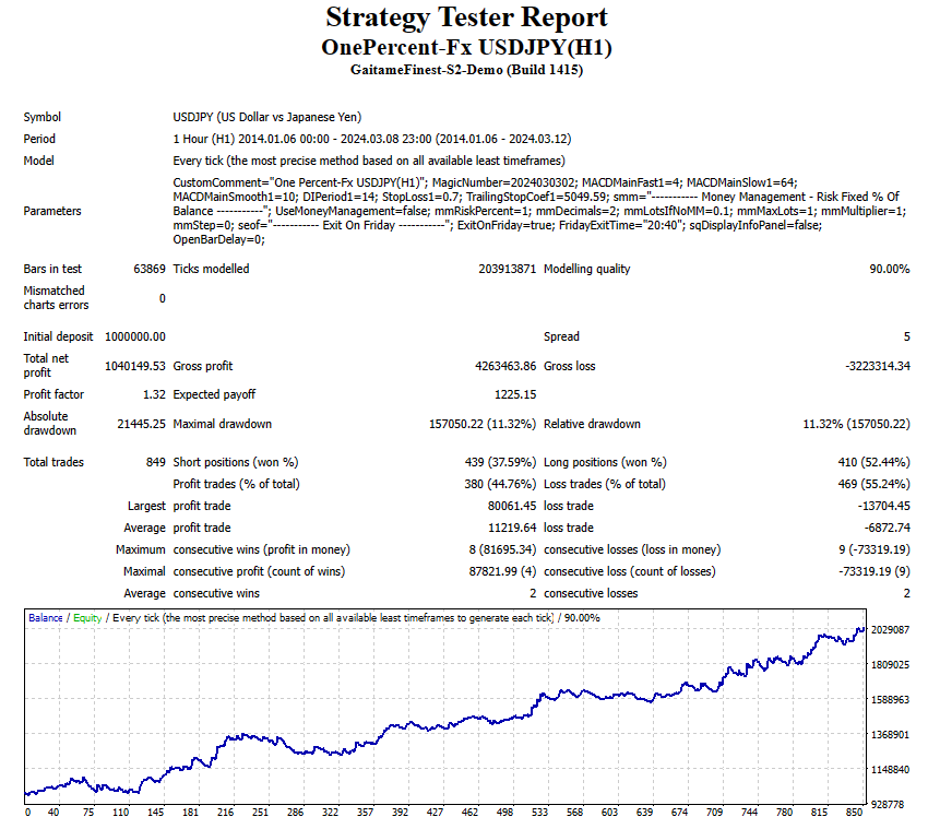 OnePercent-Fx USDJPY(H1)のスペック