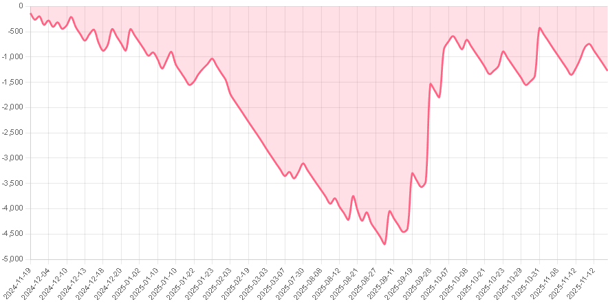 一方的な下降トレンドが続く場合は何日もポジションを持たない期間が続く。
