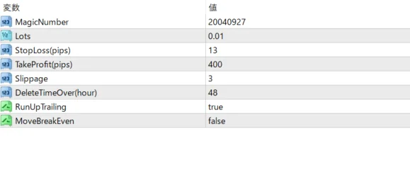 | 推奨証拠金 | $500 USD,月利:0.9% ※この情報は「0.01ロットで運用した場合の参考値」です。実際のロットサイズに応じて変動します。 |