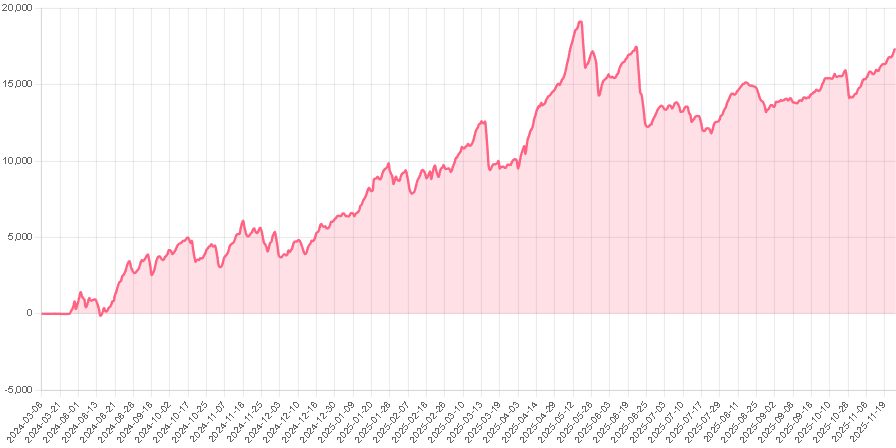 固定値による利確・損切りも行いますが、オシレーターをトリガーとした可変の利確・損切りも行いますので、状況に応じた最適の手仕舞いをしてくれます。