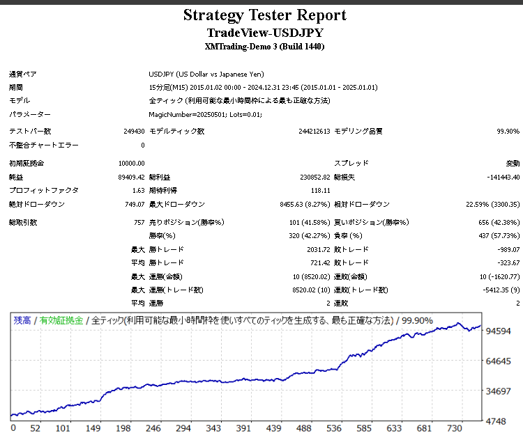 TradeView-USDJPYのバックテスト