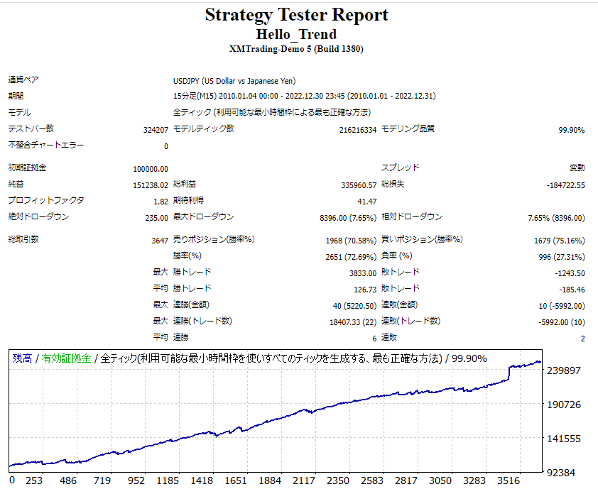 | 推奨証拠金 | $300 USD、月利:4% ※この情報は「0.01ロットで運用した場合の参考値」です。実際のロットサイズに応じて変動します。 |