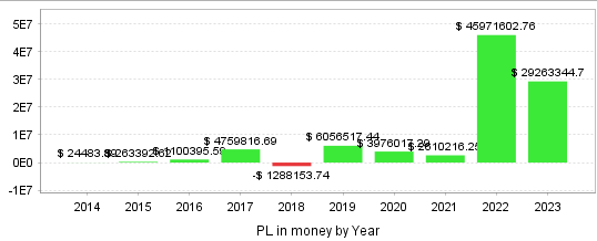 【月利70.3%】ドル円10年安定/自動複利運用あり、10年間(2014~2024)の運用年利は98.52%。