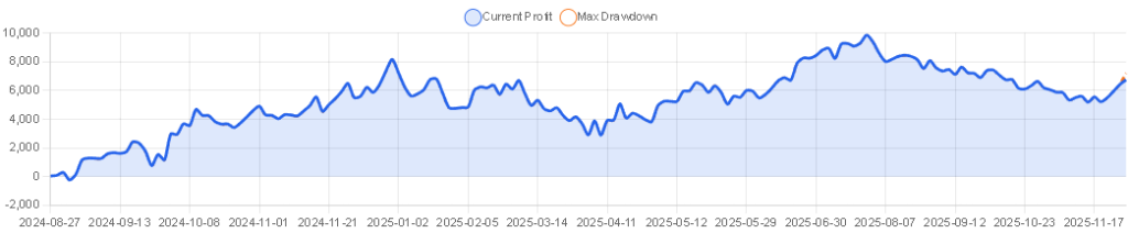 | 推奨証拠金 | $100 USD,月利:8% ※この情報は「0.01ロットで運用した場合の参考値」です。実際のロットサイズに応じて変動します。 |