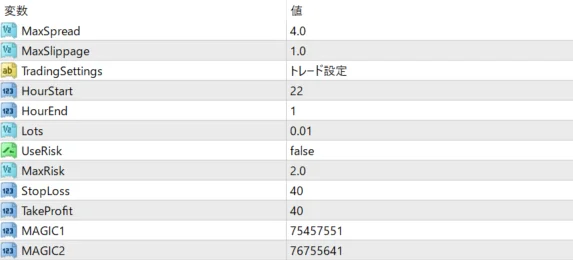 MillionScalper USDJPYのパラメーター