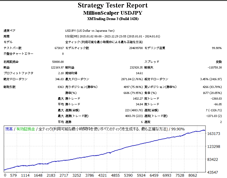 MillionScalper USDJPYのバックテスト