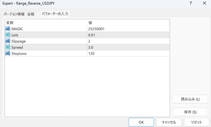 「Range_Reverse_USDJPY」は、その名の通りUSDJPY専用の逆張り型EAです。