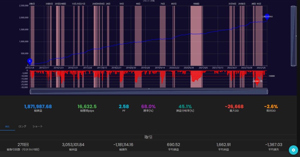 以下はTDSデフォルト設定でのバックテストデータとなります。
