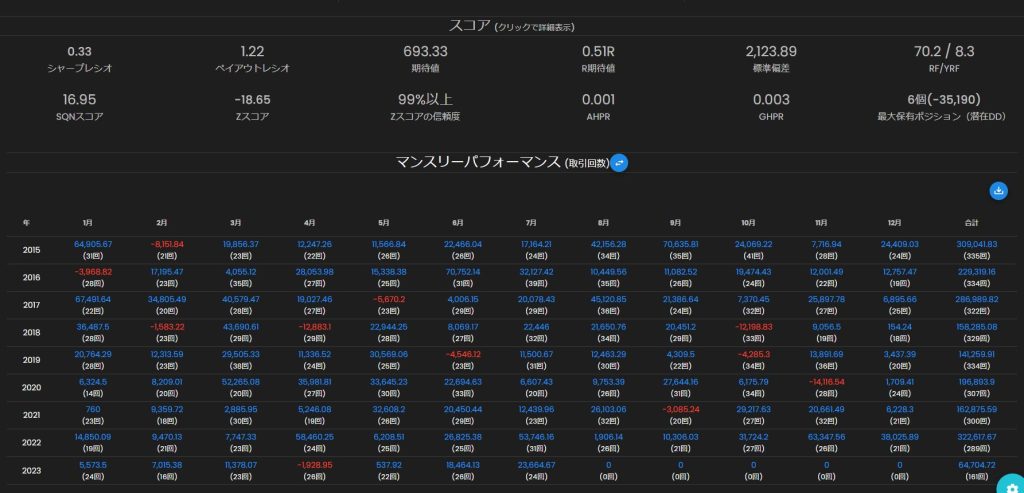 また、BTなどの過去検証において統計的に優位性のない時期や日を抑制することで無駄なエントリーをなくしパフォーマンスを改善することができます。
