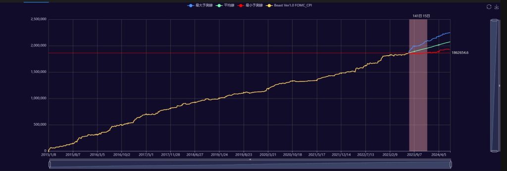 下記はパラメータ設定を変えた場合の一例となります。フィルターなし(FOMC,CPI,日銀)
