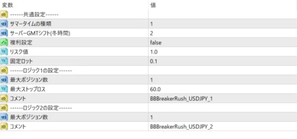BBBreakerRush_USDJPのパラメーター