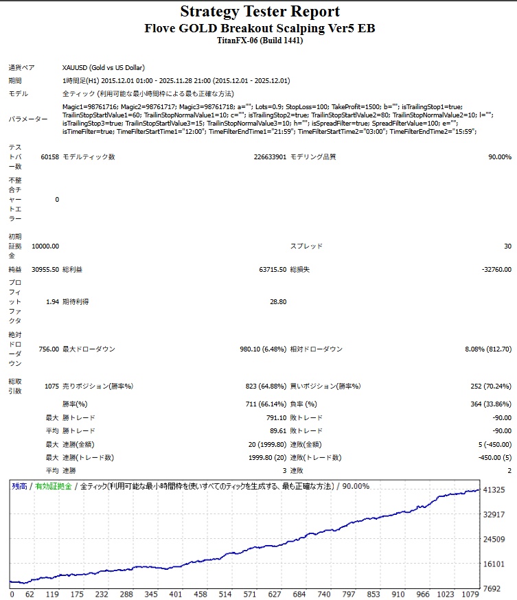Flove GOLD Breakout Scalping Ver5のバックテスト