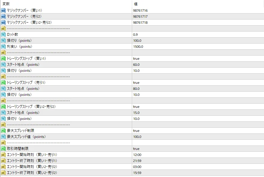 Flove GOLD Breakout Scalping Ver5のパラメーター