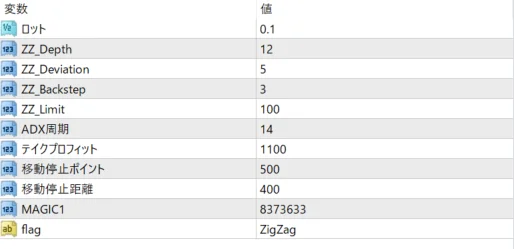未決注文は前のZigZagの高値と安値に配置されます。ZigZagの前回の高値と安値を参考にして、適切なエントリーポイントを決定します。
